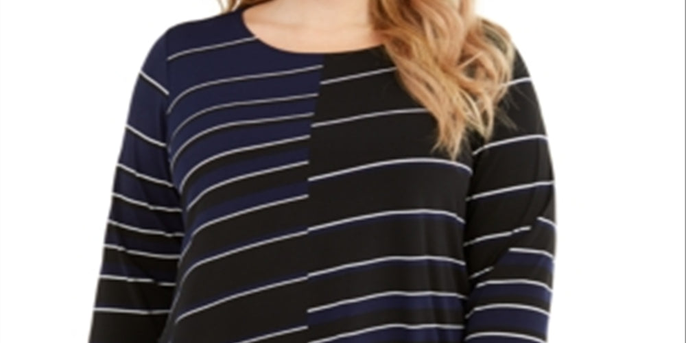 Update your favorite pieces with this plus size top from Alfani| in a bold contemporary print finished with a handkerchief hem for flattering chic