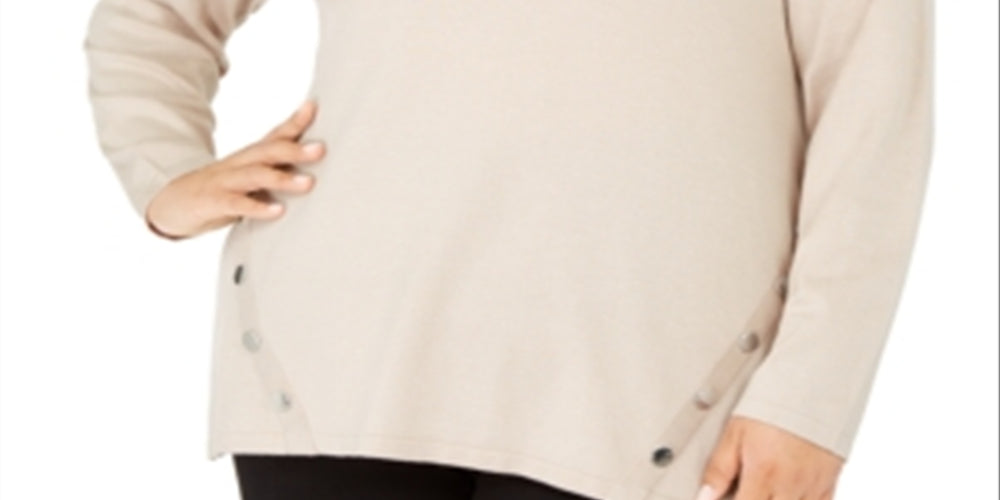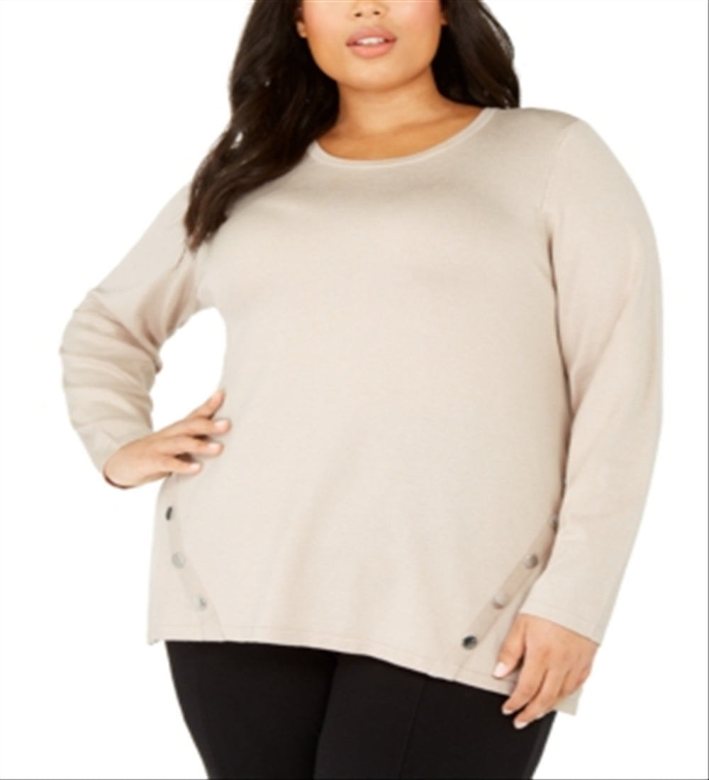 Alfani Women's Plus Round Neck Button Hem Sweater Brown Size 2X