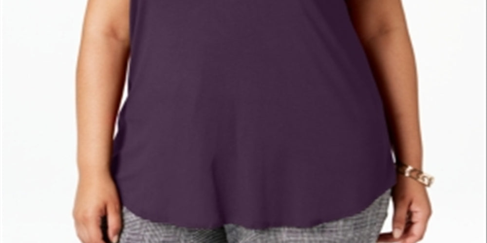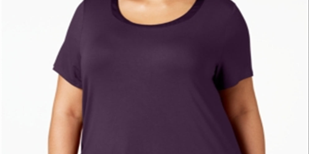 Alfani Women's Plus Satin-Trim High-Low T-Shirts Dark Fig Size 0X