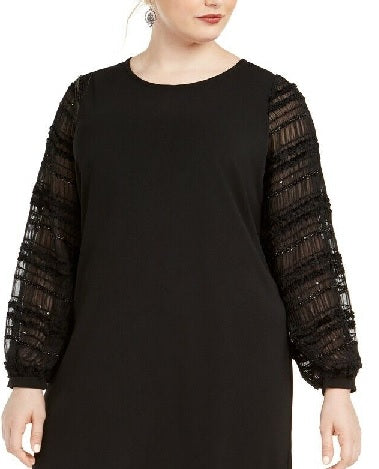 Alfani Women's Plus Size Embellished-Sleeve Shift Dress Black Size 2X