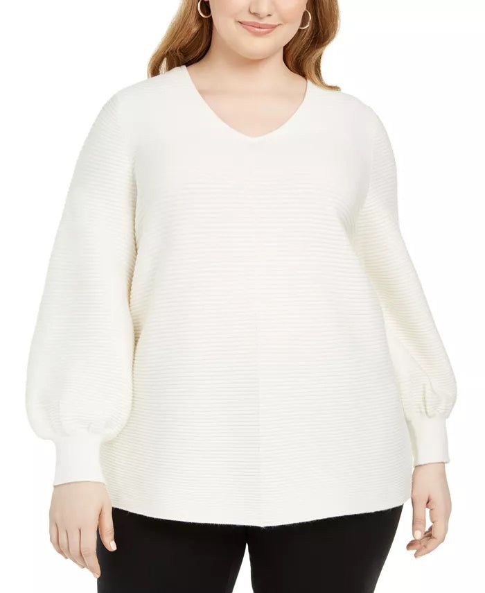 Alfani Women's Plus Size Ottoman-Stitch Sweater White Size 1X