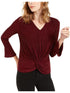 Alfani Women's Plus Textured Bell Sleeve Blouse Red Size XX-Large