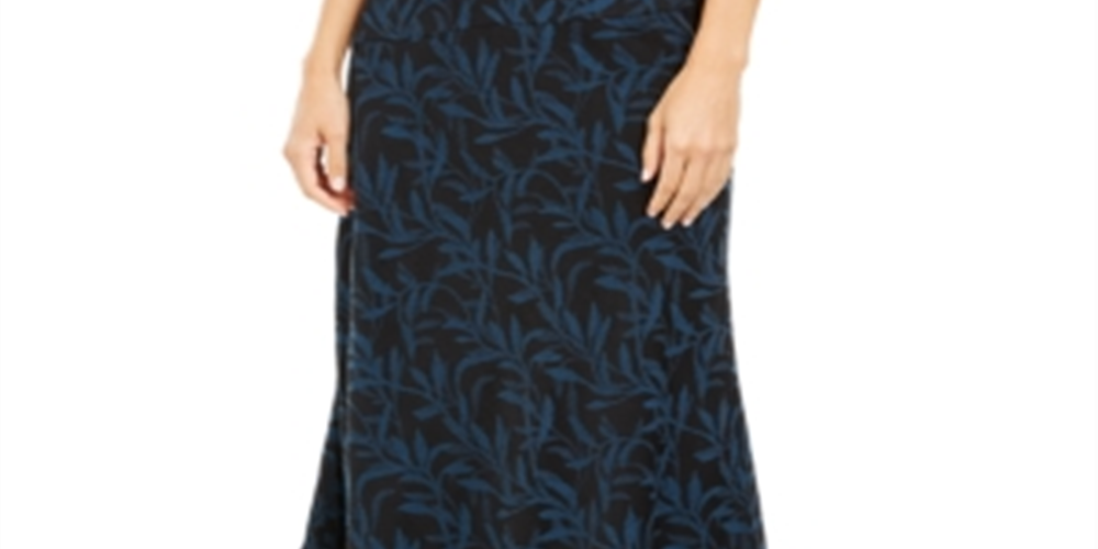 Alfani Women's Printed Asymmetrical MIDI Skirt Blue Size 14