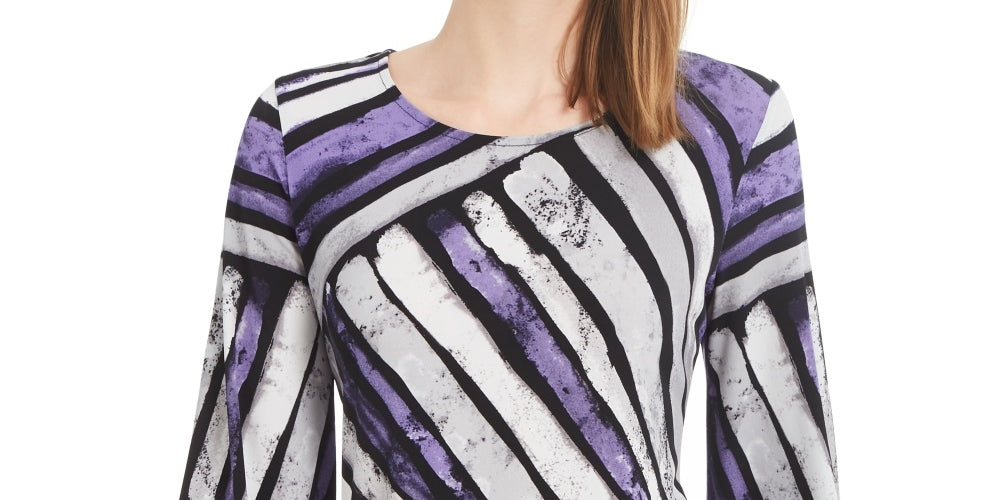 Alfani Women's Printed Pointed Hem Top Purple Size Petite Small