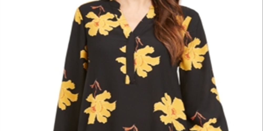 Alfani Women's Printed Roll Tab Sleeve Tunic Top Black Size Medium