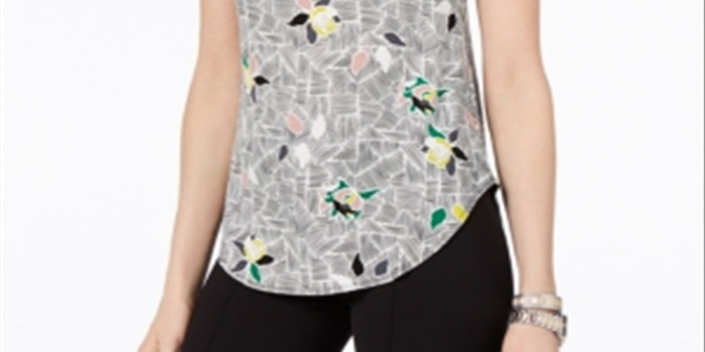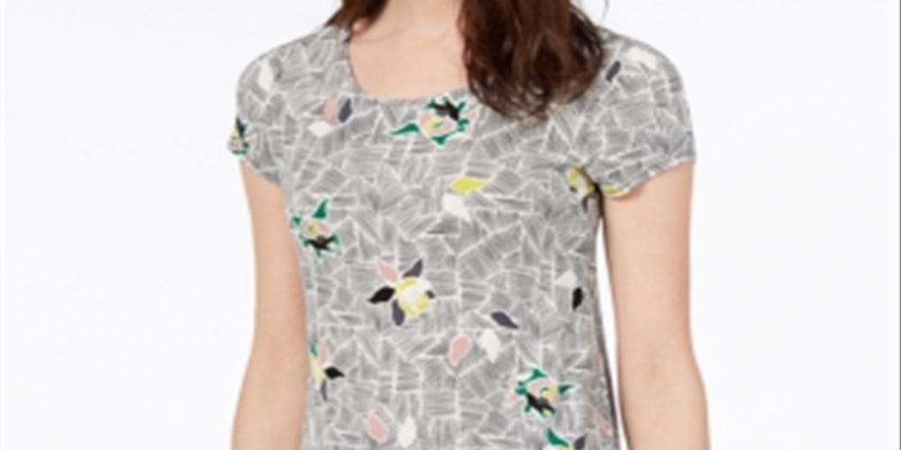 alfani's petite t-shirt is updated with a polished and versatile print and completed with a contemporary rounded hem
