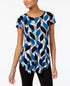 Alfani Women's Printed Round Hem T Shirt Blue Size -PS