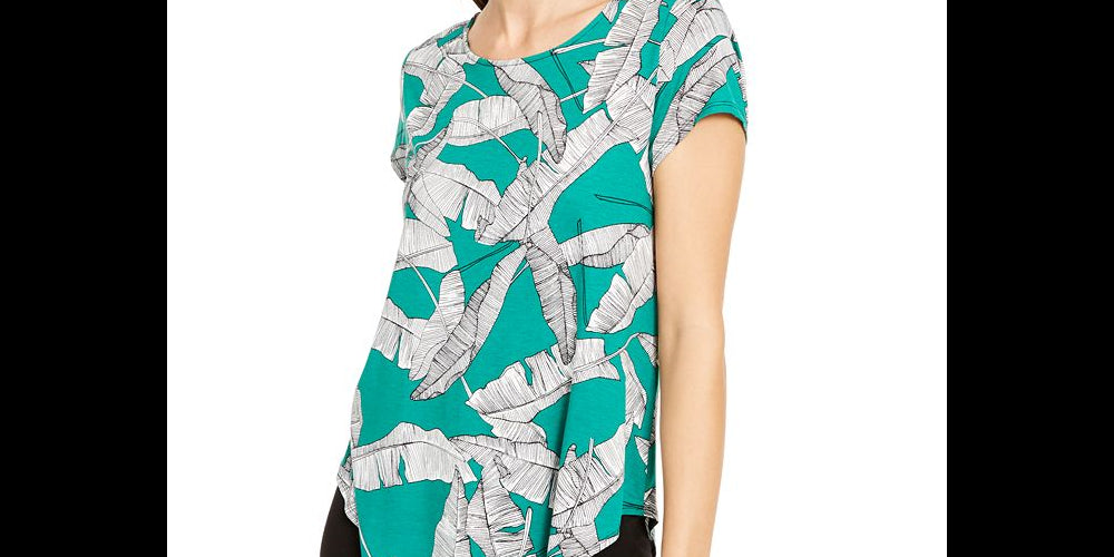 Alfani Women's Printed Round Hem T-Shirt Green Size Petite XL