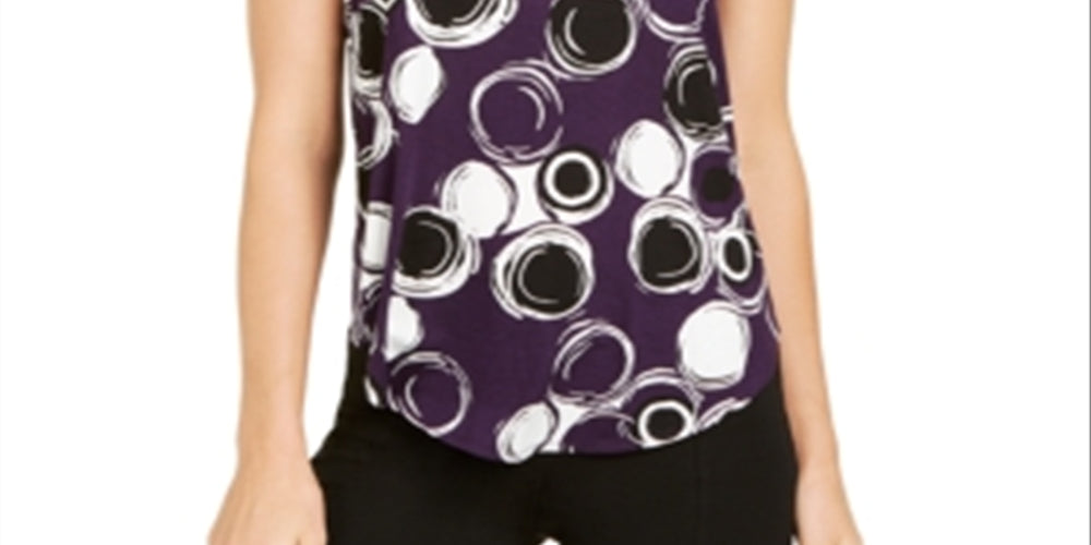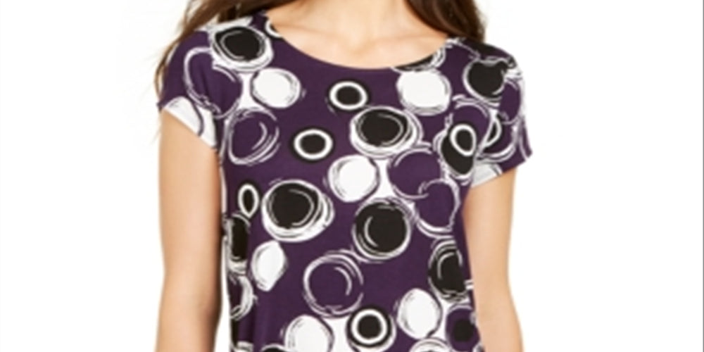 Alfani Women's Printed Round Hem T-Shirt Purple Multi Size Petite L
