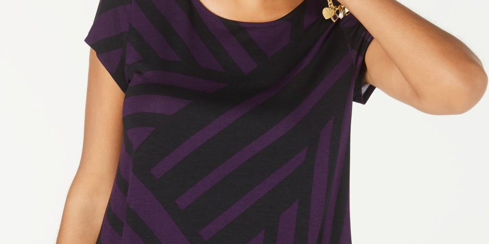 Alfani Women's Printed Round-Hem T-Shirt Purple Size Petite
