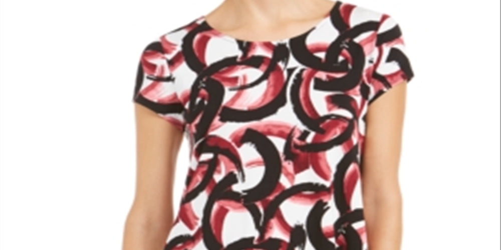 Alfani Women's Printed Round Hem T-Shirt Red -Black Size Petite L