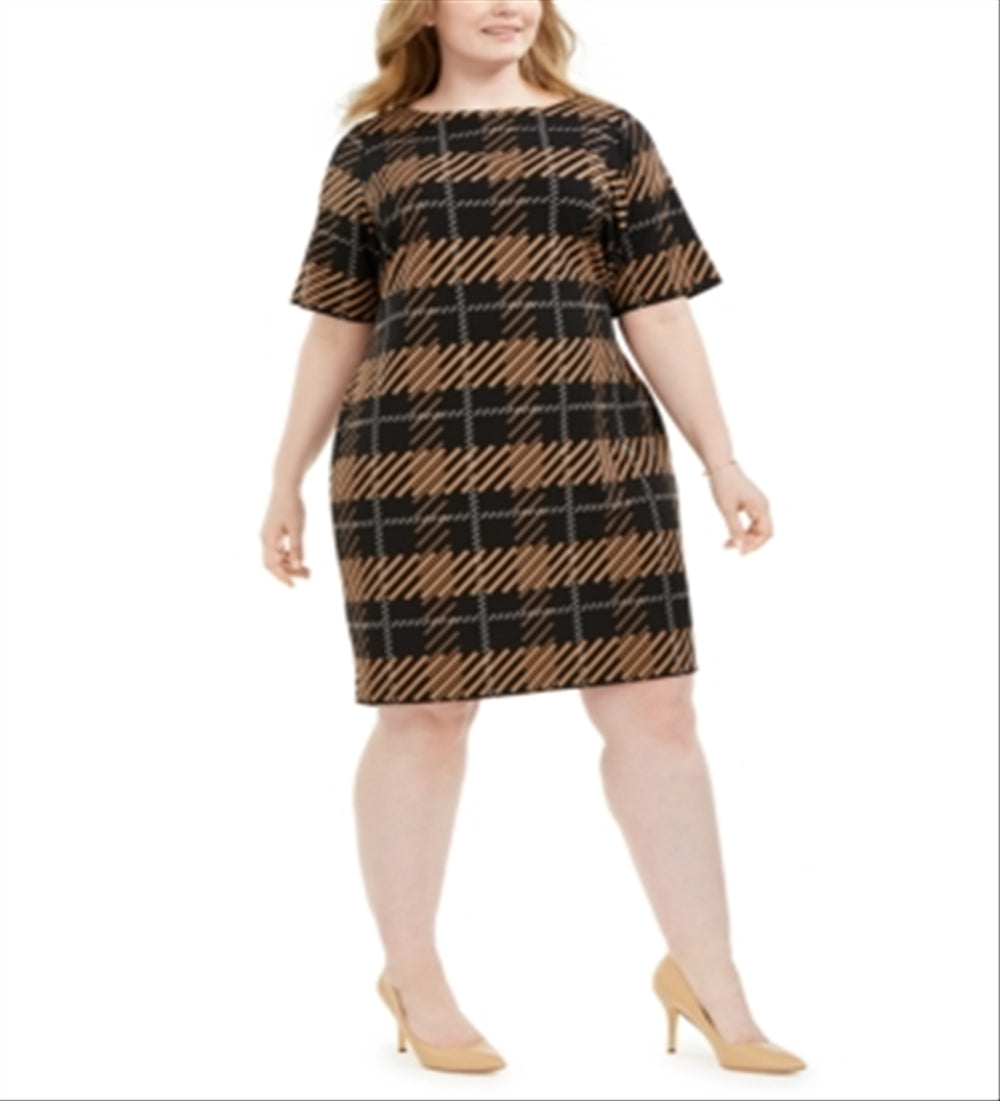 A statement-making plaid adds pizzazz to this plus size dress from Alfani| a workplace essential that's basic and chic (without the boring)