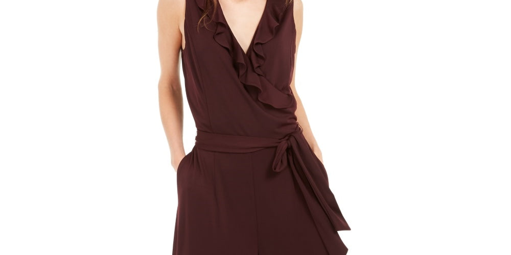 Alfani Women's Ruffled Jumpsuit Red Size Petite XL