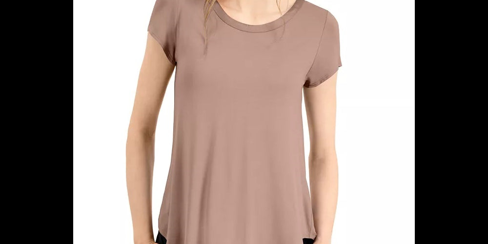 Alfani Women's Satin Trim High Low T-Shirt Brown Size Medium