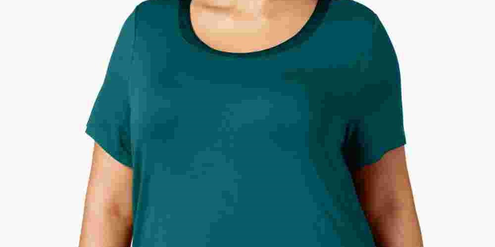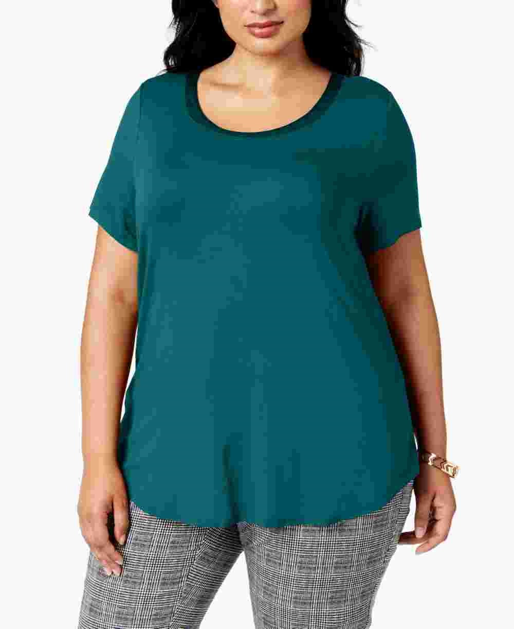 Alfani Women's Satin Trim High Low T-Shirt Green Size 3X