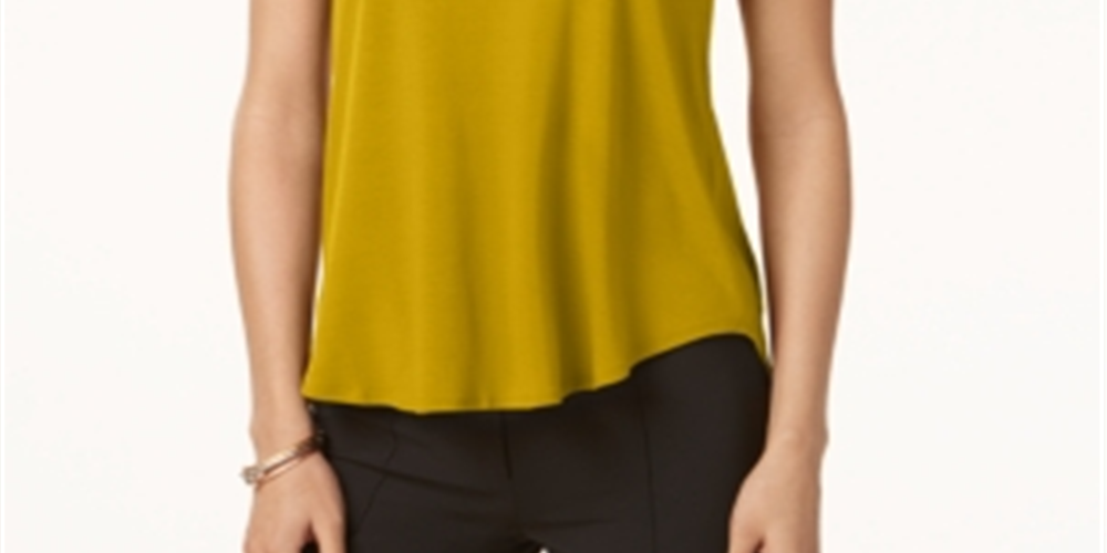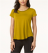 Alfani Women's Satin Trim High Low T-Shirt Yellow Size Petite