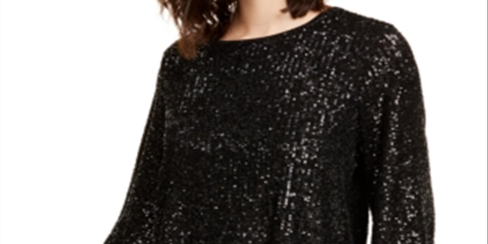 Alfani Women's Sequined Bell Sleeve Top Black Size Petite Small