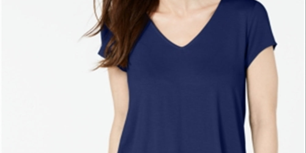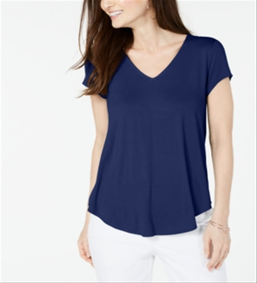 Alfani Women's Short Sleeve V Neck Top Blue Size Small