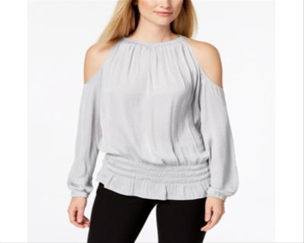 Alfani Women's Smocked Cold Shoulder Top Grey Size Petite Small