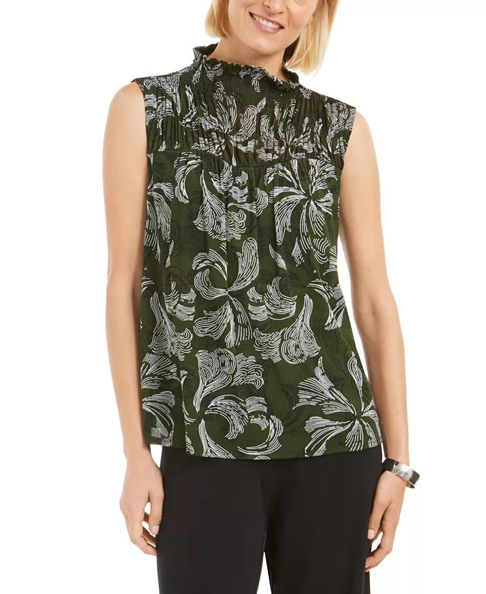 Alfani Women's Smocked Mock Neck Top Black/Red/WhiteSize P/S