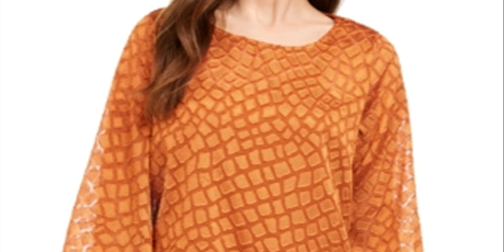 Alfani Women's Snakeskin Print Bubble Blouse Brown Size Petite Small