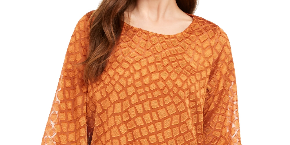 Alfani Women's Snakeskin Print Bubble Blouse Brown Size Petite XL