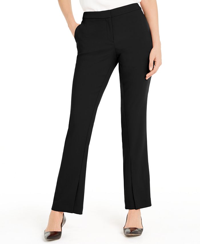 Zipper and hook-and-bar closure| Slash pockets at hips| decorative welt pockets at back