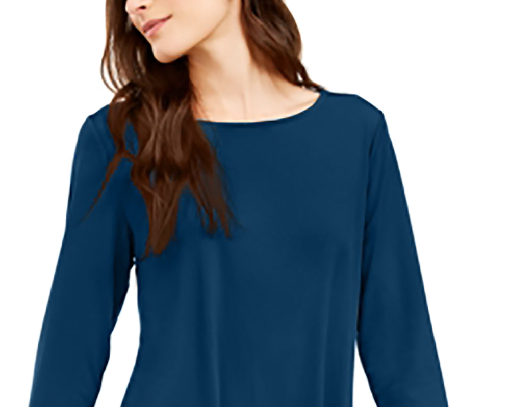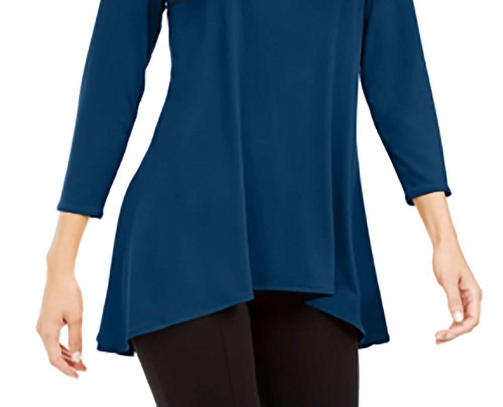 Hits at hip|Designed to fit and flatter 5'4" and under frame|Scoop neckline|Swing hem|3/4-sleeves