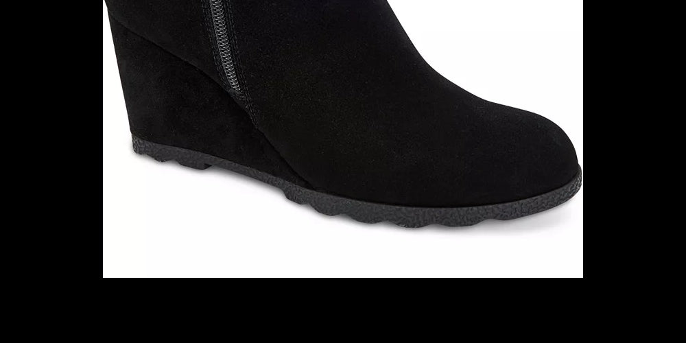 Alfani Women's Step 'N Flex Oreena Faux-Fur-Cuff Wedge Booties Black Size 10 M