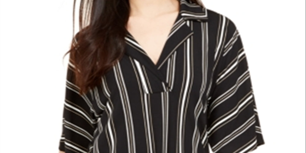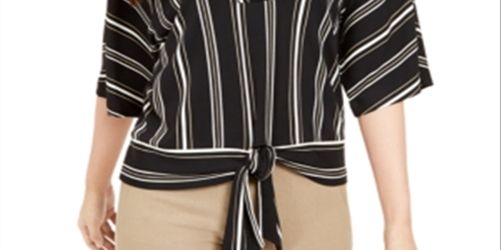 Alfani Women's Stripe Notch Collar Tie Front Blouse Black Size Large