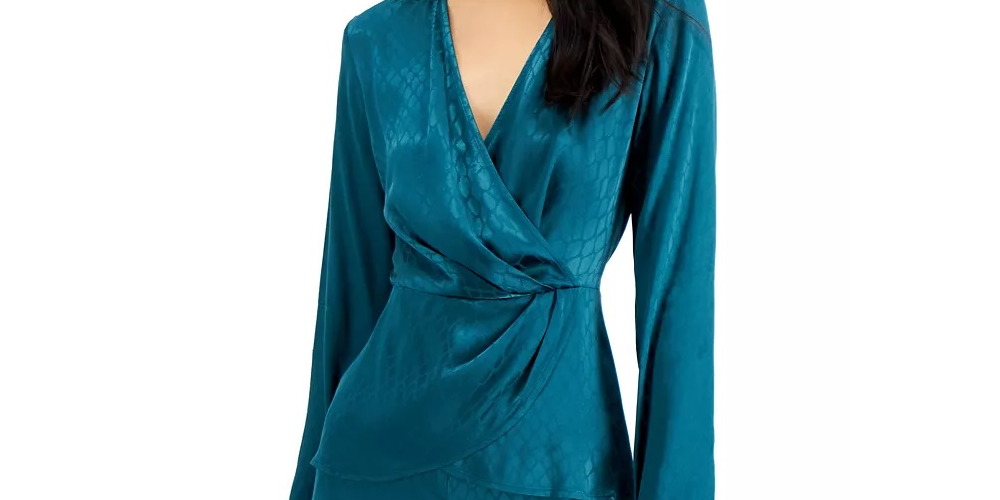 Alfani Women's Tonal-Print Surplice Blouse Navy Size Extra Large