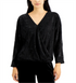 Alfani Women's V Neck Embellished SurpliceKnit Top Black Size Large