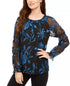 Alfani Women's Velvet Burnout Sheer-Sleeve Top Green Size Small