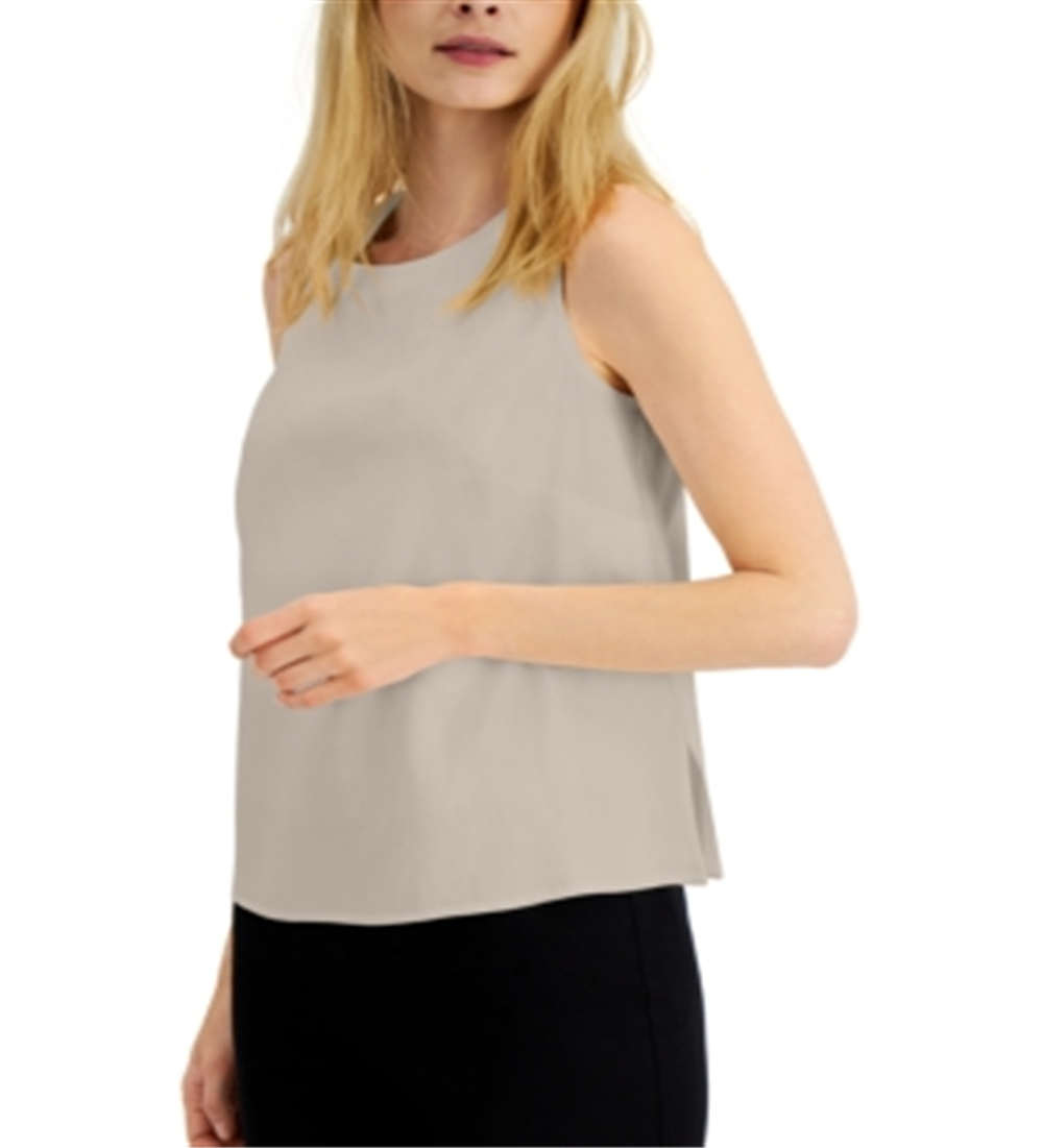 A clean-cut silhouette with a light and airy feel| this sleeveless top from Alfani is the perfect piece to go with any kind of bottoms.| Approx. 24-1/2 long; hits at waist| Crewneck; pullover styling| | Linen/rayon/spandex