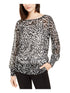 Alfani Women's Zebra Print Long Sleeve Jewel Neck Top White Size Small