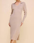 Allie Rose - Ribbed V Neck Collar Long Sweater Dress