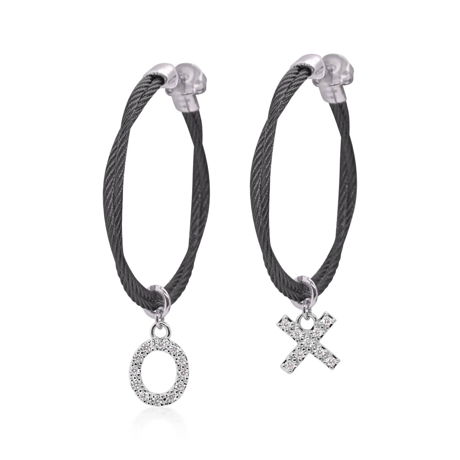 Classic earrings that will take you from season to season. Presenting the ALOR Expressions Of Love Xo Earring, a stunning piece crafted for elegance. This fine jewelry features a twisted stainless steel cable hoop with charming hanging diamond X and O details. Crafted with 18kt white gold and boasting a total diamond carat weight of 0.17, these earrings secure with 18kt gold posts and stainless steel butterfly backs. Made with the utmost precision and imported for exquisite style.