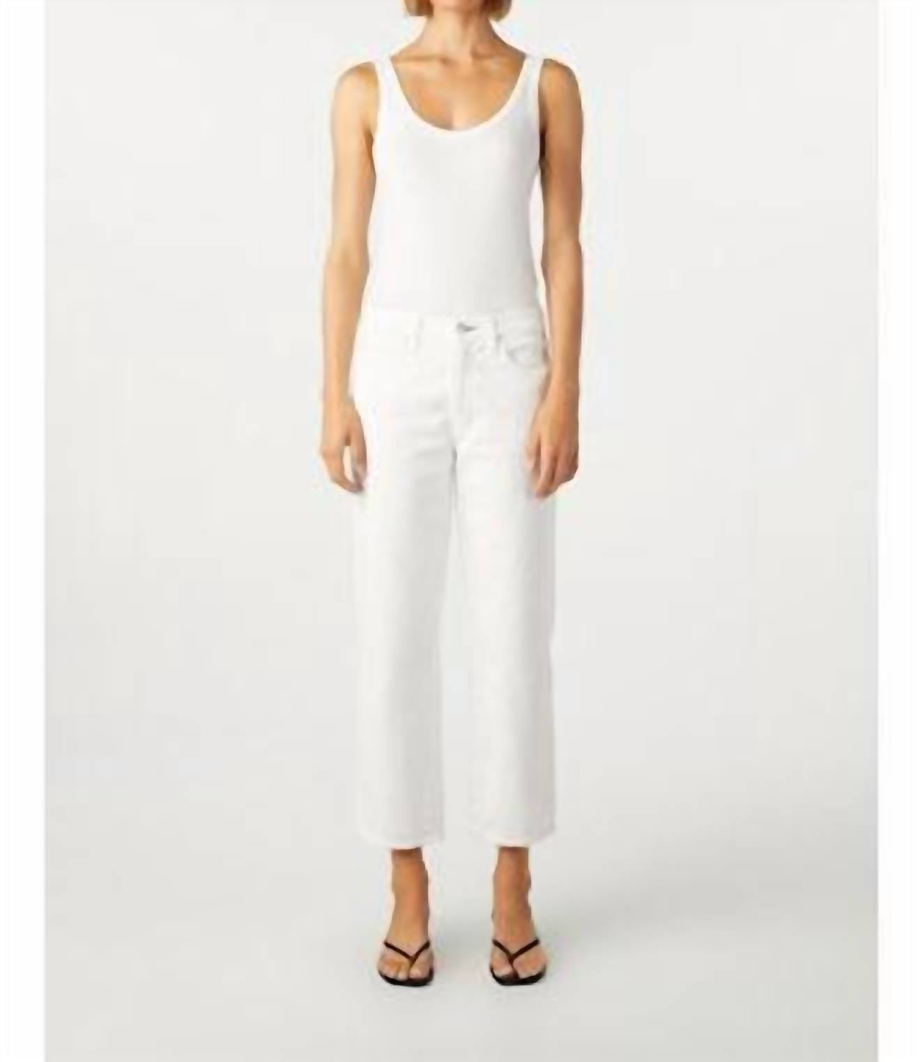 Introducing the Women's Billie Jean by AMO, expertly crafted in Los Angeles, US. These alabaster straight-leg pants offer a chic, relaxed fit with a mid-rise and a 26.5" inseam, all made from 100% cotton. Finishing with a practical button and zip fly closure, the pants feature a thoughtful vintage-inspired design. Easy care is ensured with machine wash cold and optional low heat tumble drying.