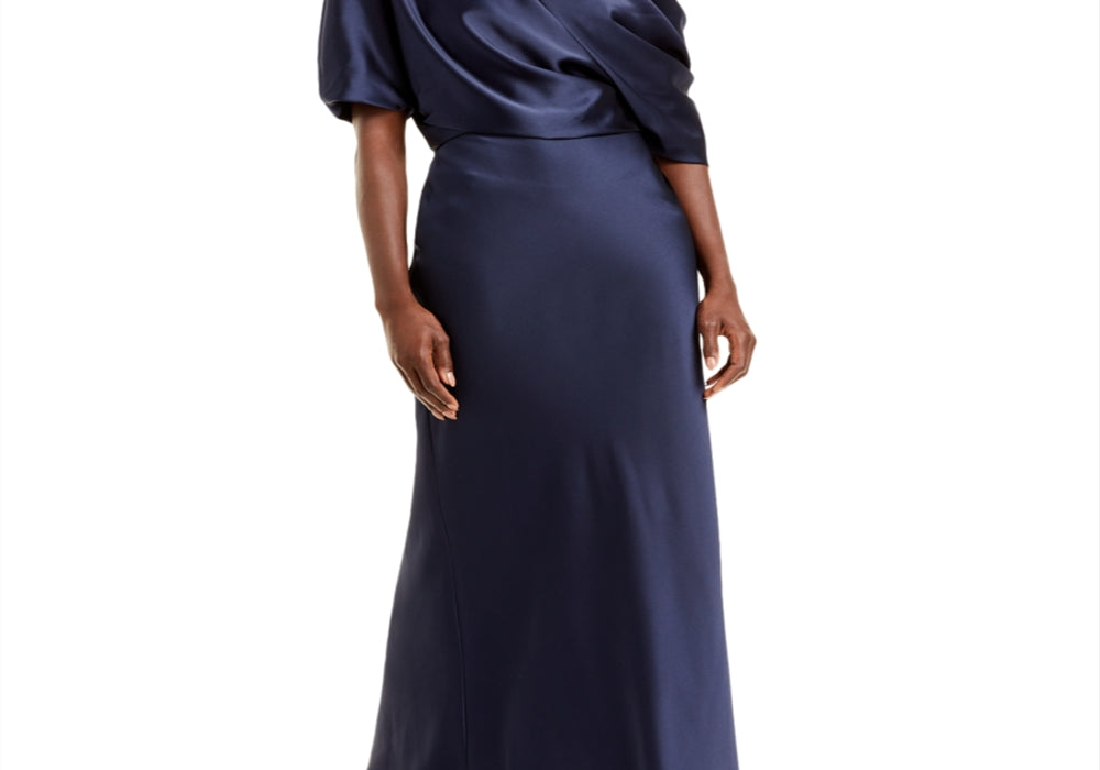 One-Shoulder Design | Fluid Satin Material | Classic Navy Color | Size 14 | From Amsale Collection | Nordstrom Exclusive | Elegant Evening Wear | Versatile Styling | Durable Construction | Comfortable Fit