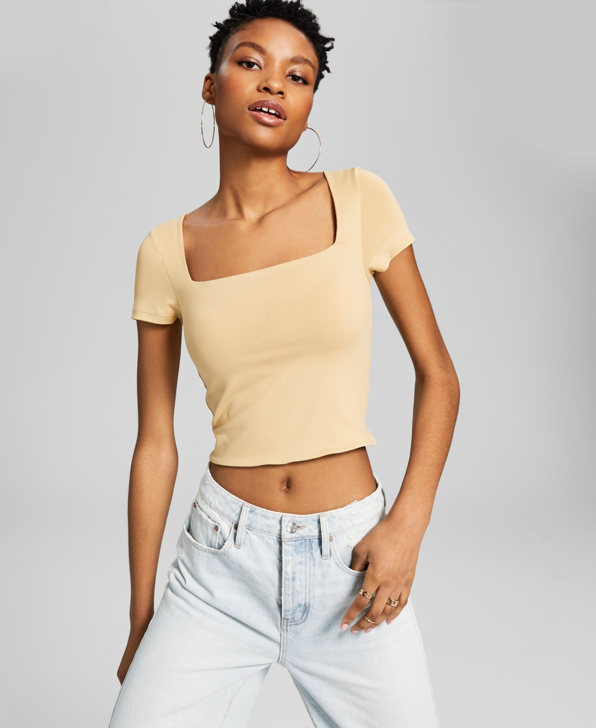 And Now This Women's Square Neck Double Layered Tee Brown Size Small