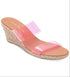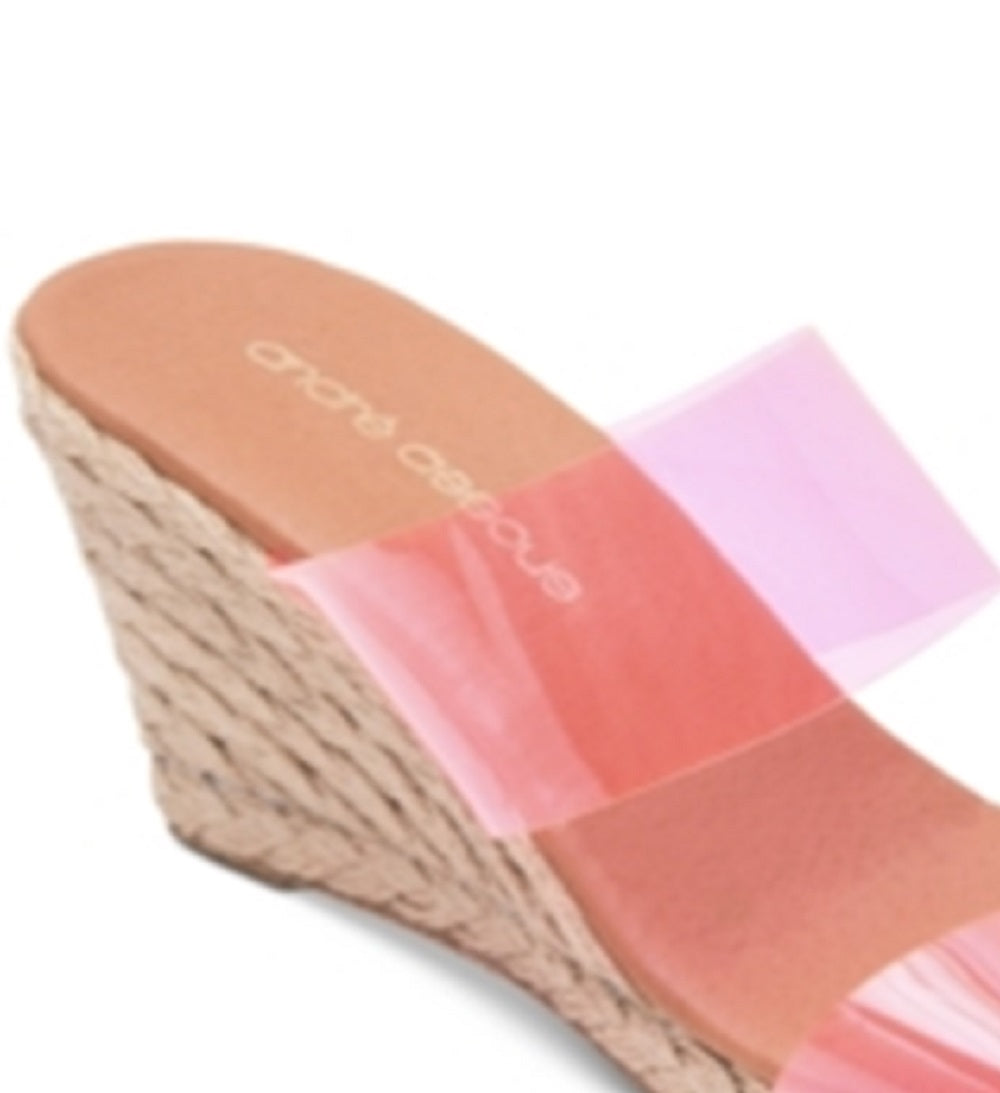 Andre Assous blends a breezy espadrille platform heel and barely-there silhouette on the Andrea wedges| topped in translucent vinyl straps for a fresh finish.| 2-1/2 espadrille wedge heel; 1/2 platform| Round-toe slip-on espadrille platform wedge sandals| Manmade vinyl upper; leather lining; leather sole| Imported
