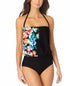 Vibrant florals highlight this one-piece from Anne Cole| a blouson bodice with a bandeau neckline that lets you change things up.| Removable cups| Full bottom coverage| Pull-on style; removable| adjustable over-the-shoulder straps