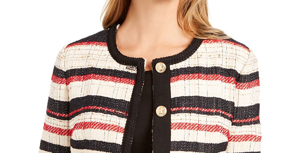 Anne Klein Women's Striped Braided-Trim Jacket White Size 4
