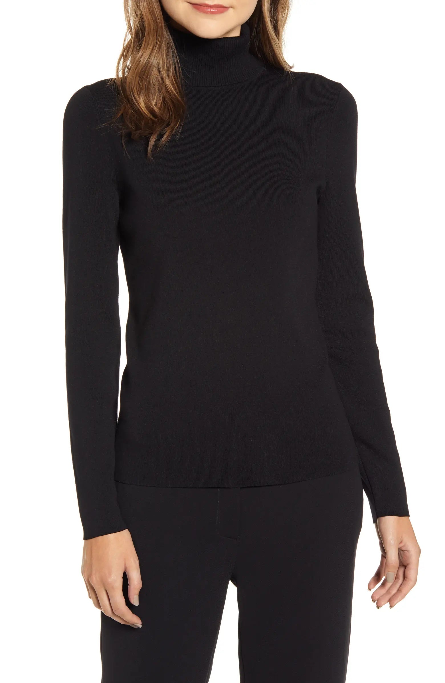 Turtleneck|Long sleeves|65% rayon, 35% nylon|Dry clean