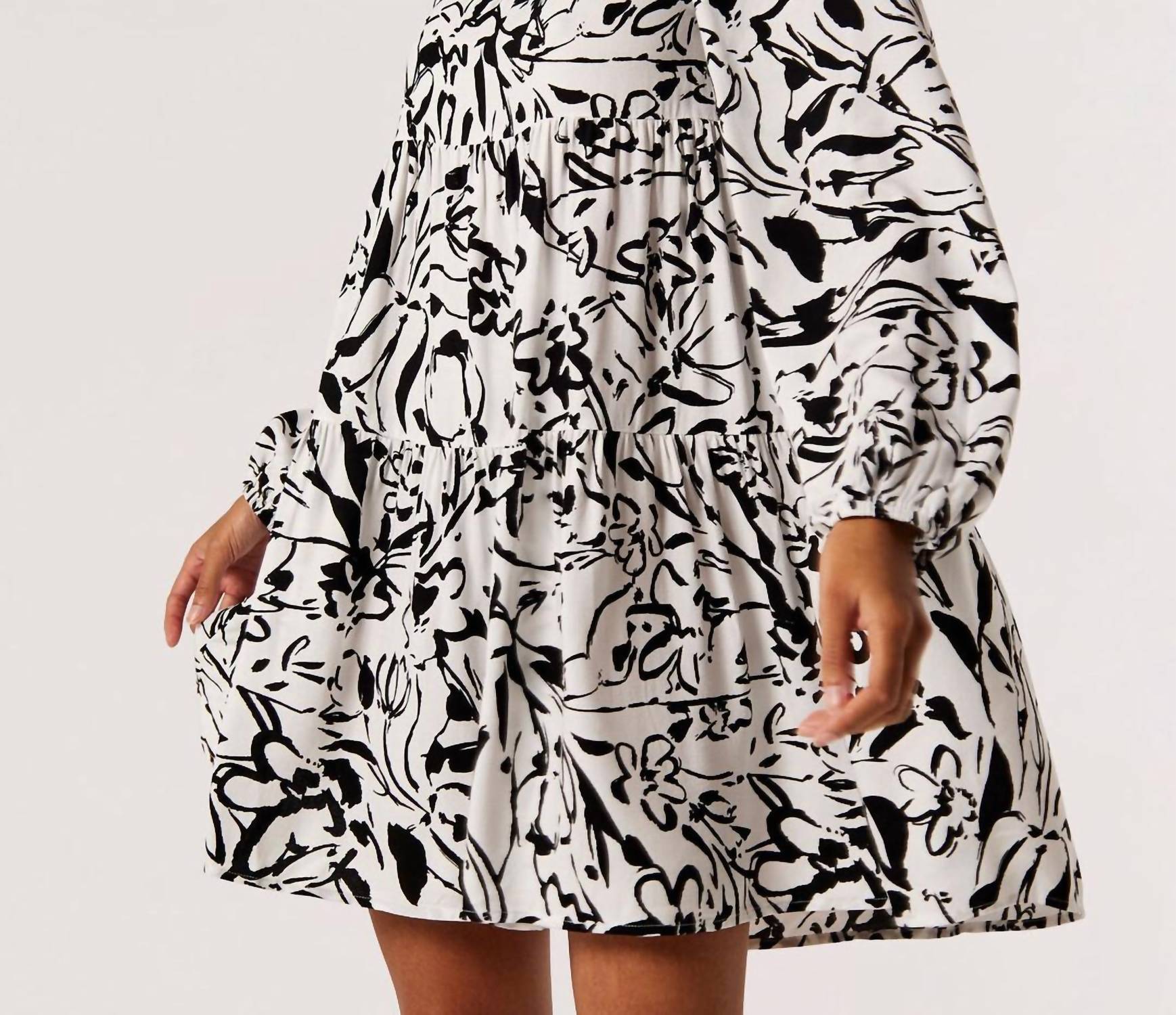 A short and breezy dress for those warmer days.This Mini Dress features a brushstroke print, a squared neckline, long puff sleeves, and a tiered A-line silhouette in soft, breathable viscose. Easy pull-on style.