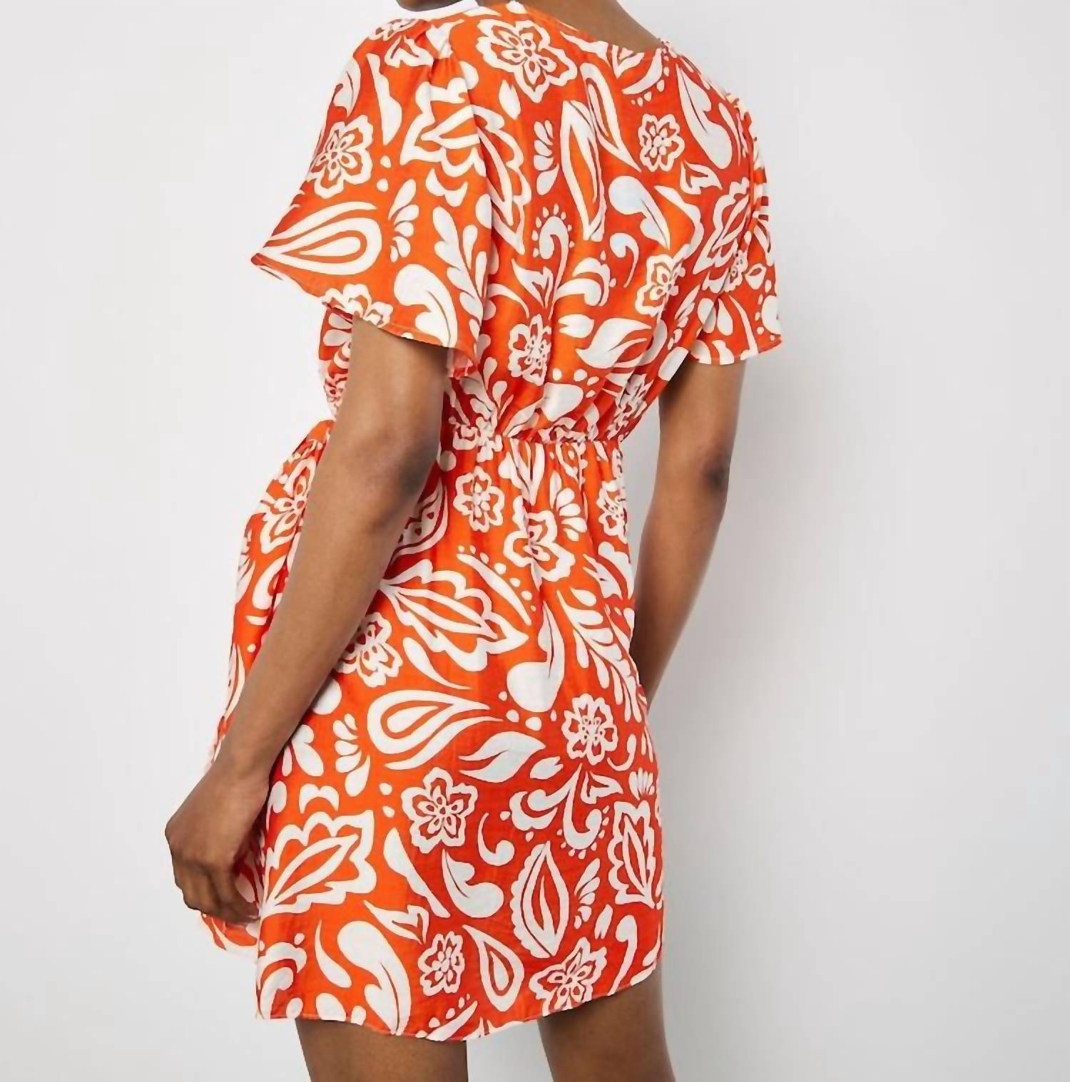 A short and breezy dress for those warmer days. Elevate your office style with the Kathryn Work Dress by APRICOT, featuring short sleeves in a vibrant orange hue. Crafted from a blend of 75% cotton and 25% linen, this mini-length dress sports a chic wrap front with a V-neckline. Made under fair working conditions in Vietnam, it closes with a tie closure for an adjustable fit. Care: Machine wash.