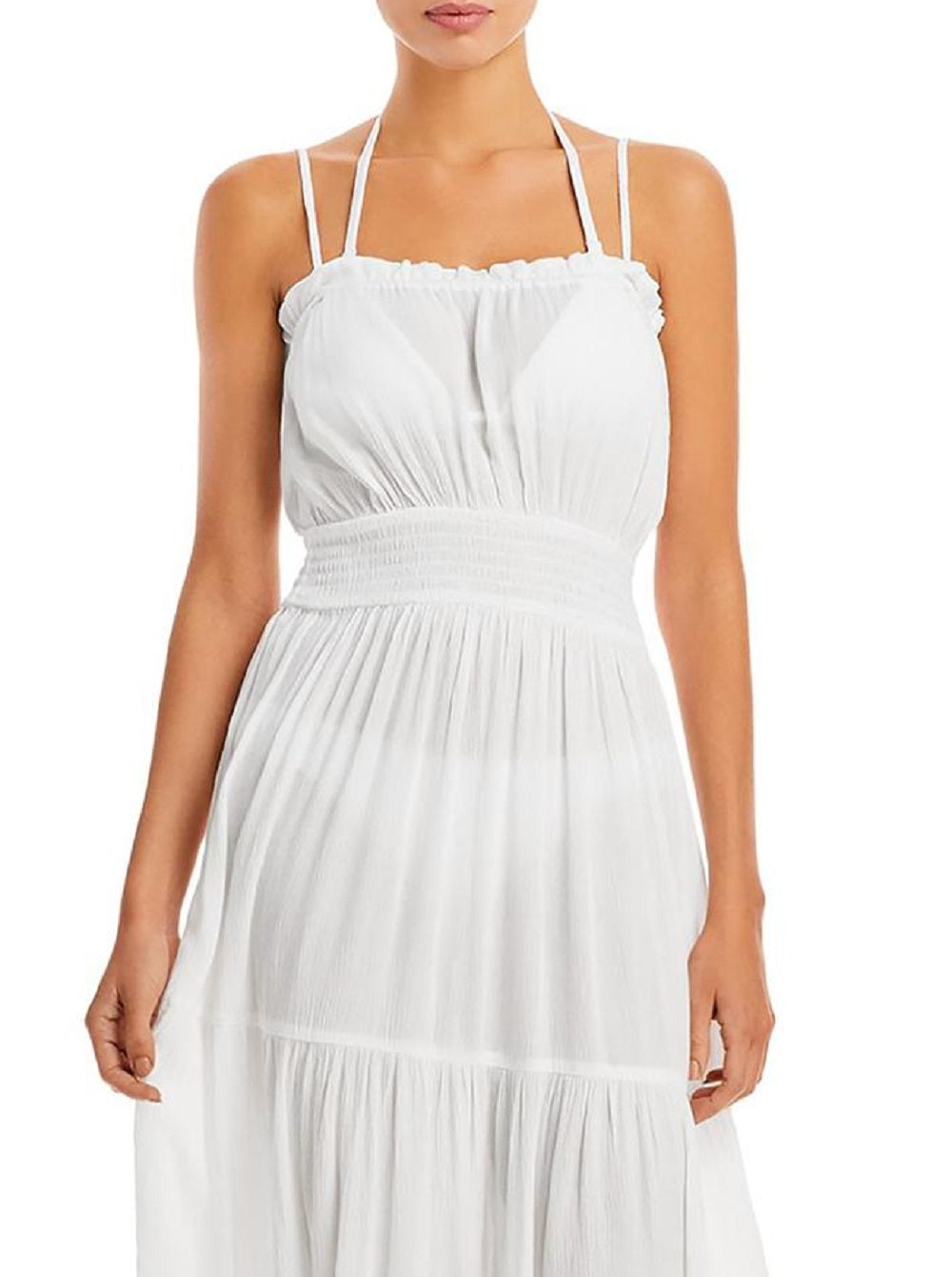 Aqua Women's Tiered Cover Up Maxi Dress Swimwear White Size Medium