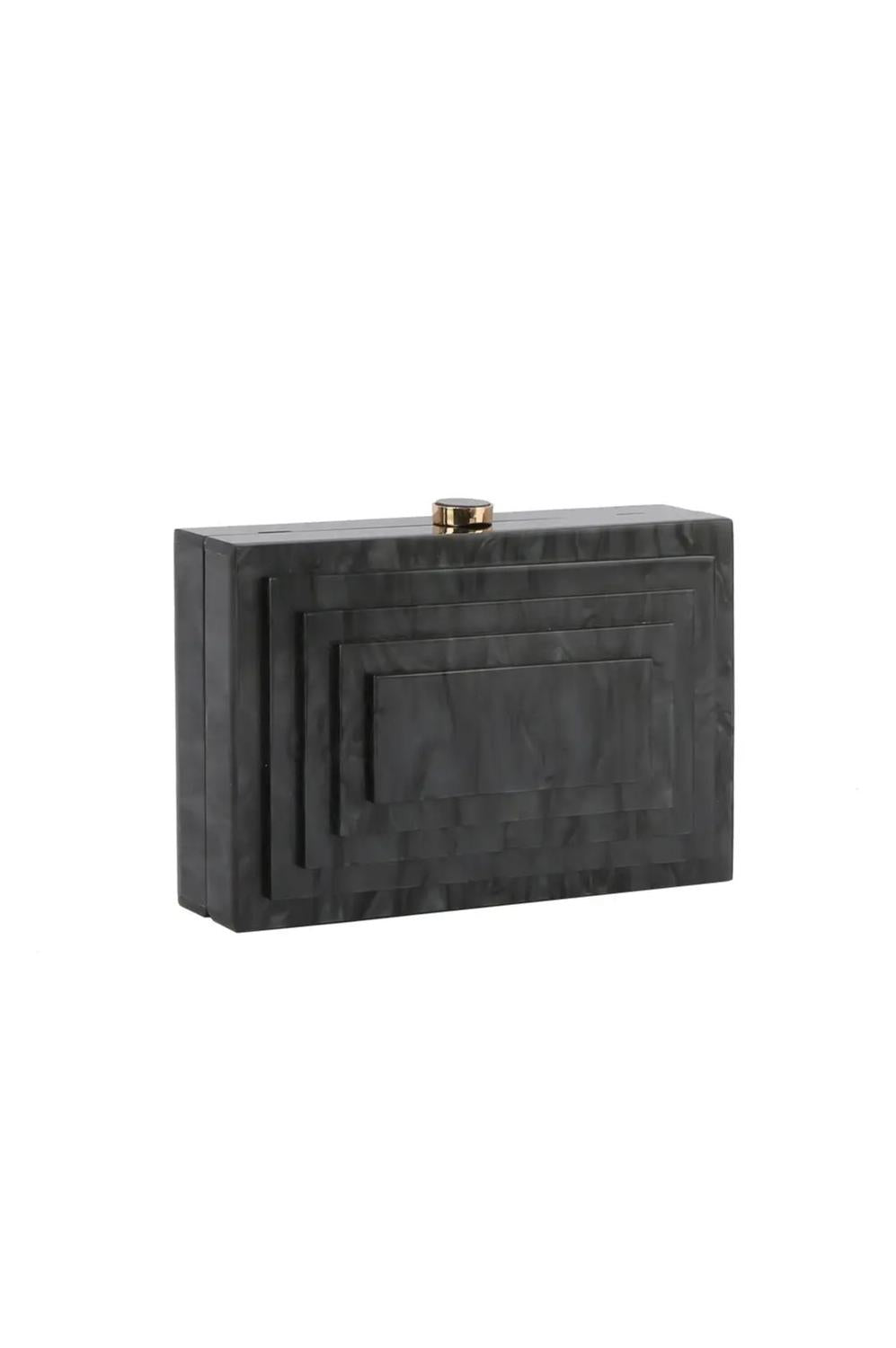 The perfect clutch for an evening out on the town. Introducing the Women's Rectangle Clutch Bag by Art Deco, an elegant accessory for any occasion. Crafted from sleek acrylic, this clutch presents a choice of classic black color, complete with a magnetic snap closure for practicality. Dimensions: 7.2" width, 1.8" depth, 4.8" height. Perfectly suited for day-to-night transitions, with an optional chain to effortlessly switch to a chic shoulder bag.