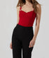 Elevate your evening wardrobe with the Adana Bow Detail Bustier Top by ASTR the Label, perfect for a party or date night in vibrant red. This chic camisole features spaghetti straps with charming bow details, a ruffle trim at the bust, and supportive underwire and boning, finished with a concealed back zip closure. With its sweetheart neckline, this top exudes femininity and allure. Composed of 95% Polyester and 5% Elastane, the bustier measures 19.25 inches in length and should be dry cleaned. The model wears a size extra small and stands at 5'9".