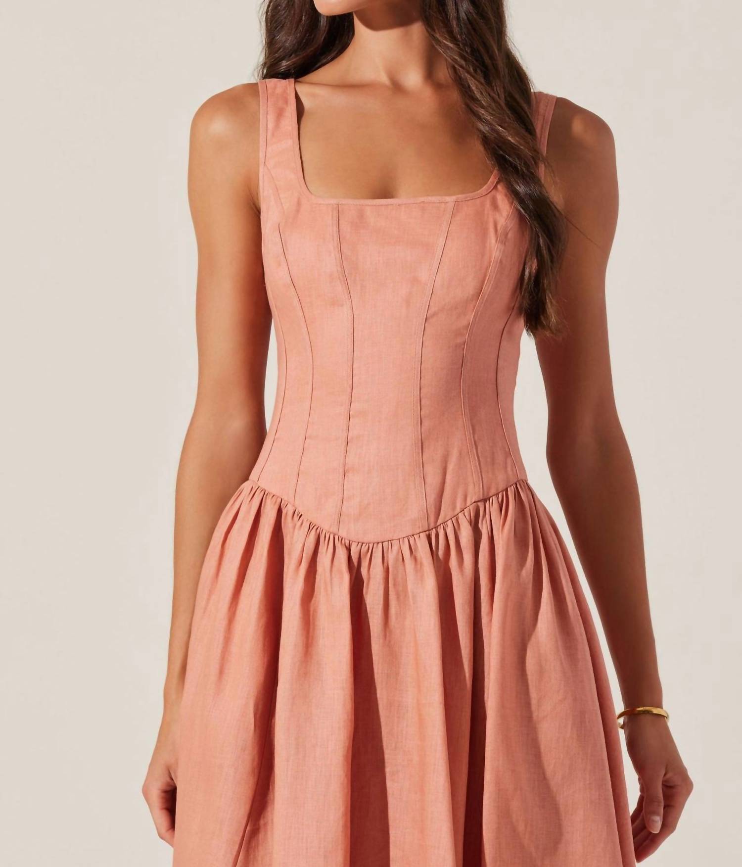 Just add slides or mules and you are good to go. Embrace the season in the Thierry Linen Midi Dress by ASTR, a timeless choice for any spring occasion. This dusty coral dress is sleeveless and crafted entirely from linen, providing a breathable and airy feel. It features a flattering square neckline, drop waist, and a fit-and-flare silhouette, with a concealed back zipper and self-tie closure for a chic finish. Made with functional side pockets for practicality, this dress requires dry cleaning to maintain its elegance.